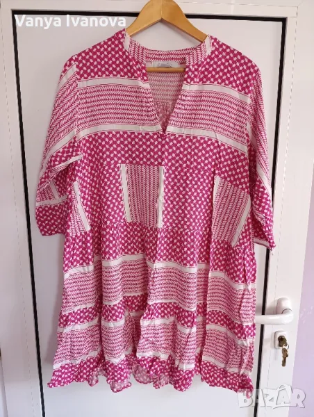 Рокля в цикламено и бяло на amisu.