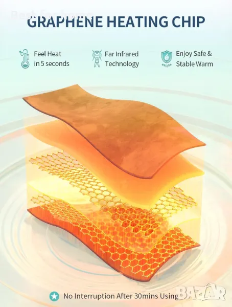 [Постоянна температура и дълъг живот на батерията] До 8 часа работа с постоянна температура. С контрол на NTC сензори, работете непрекъснато и безопасно. Няма да се изключва на всеки 30 минути.