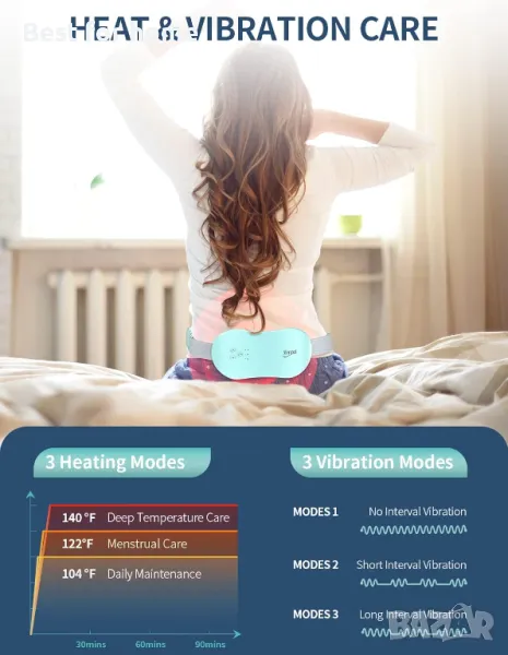 Поставете нагревателната подложка около кръста си и използвайте функцията за масаж, за да облекчите менструалната болка.