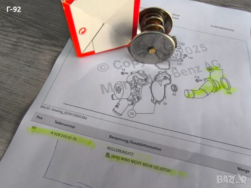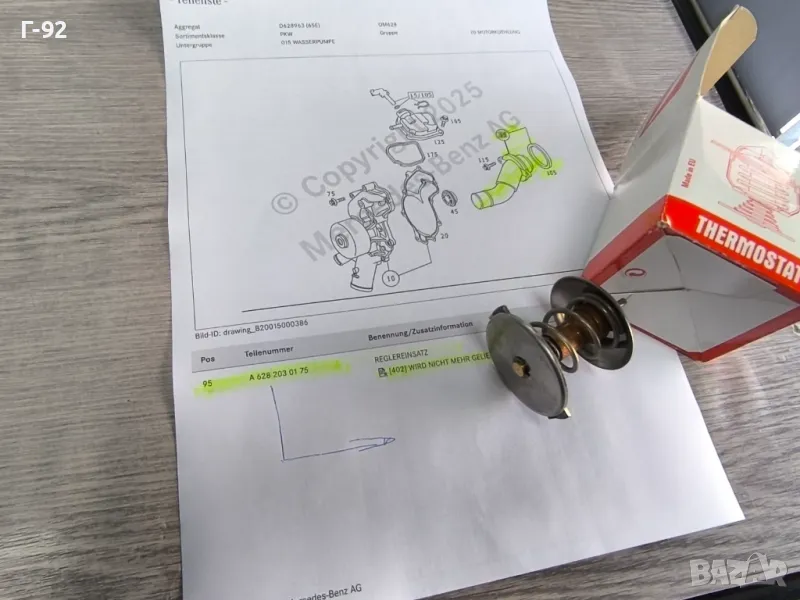 A6282000175=6417.92D**NEU**WAHLER**MERCEDES-BENZ**OM628**V8**ТЕРМОСТАТ**АЛТЕРНАТИВНО РЕШЕНИЕ**