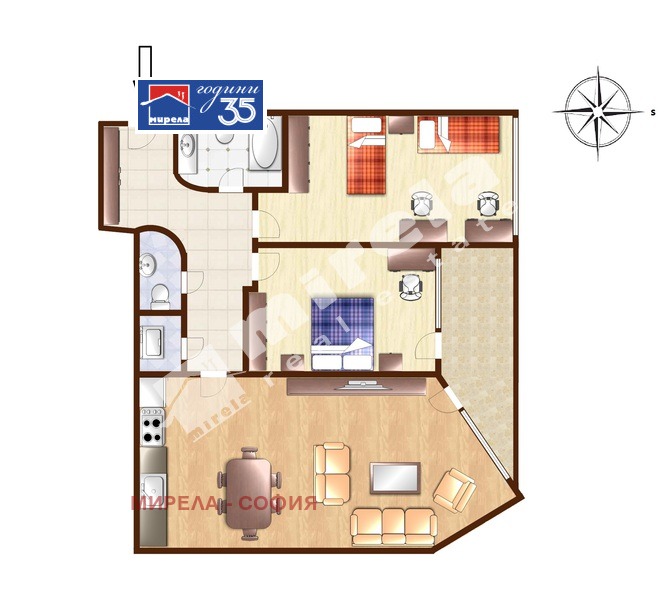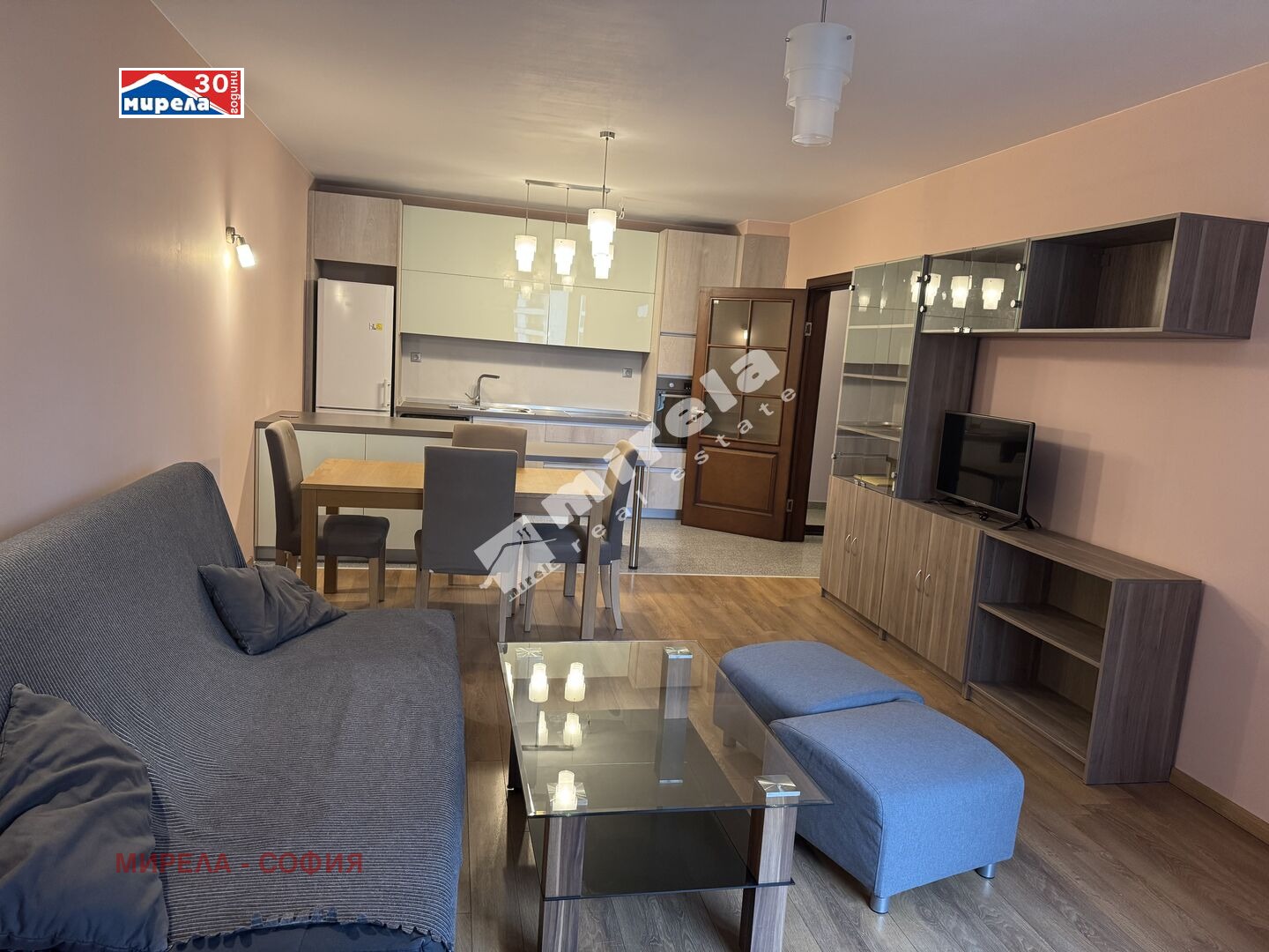 Предлага се с обзавеждането, показано на снимките. В дневната има мека мебел, кухненският бокс е оборудван с бяла техника Метрон.