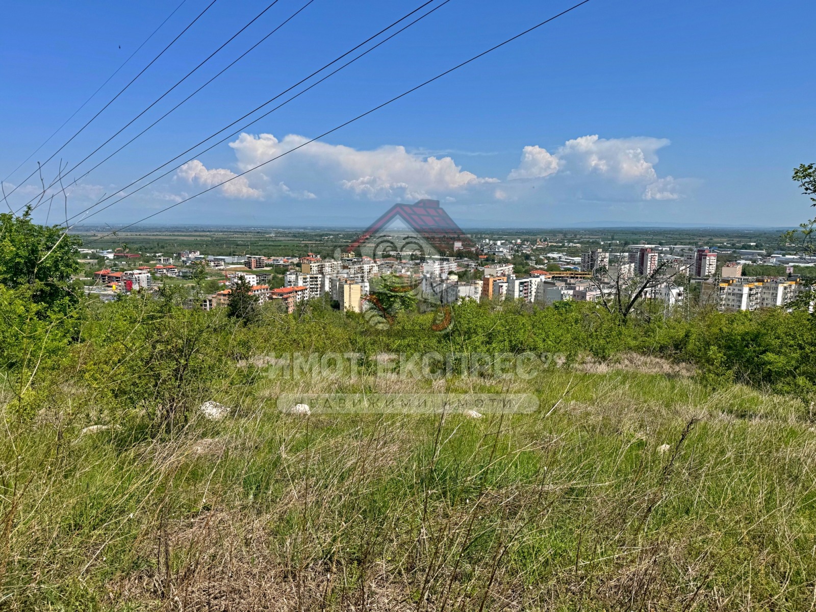Парцелът е на две улици, с панорамна гледка към града и планината.