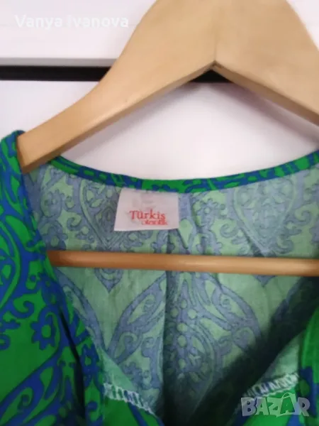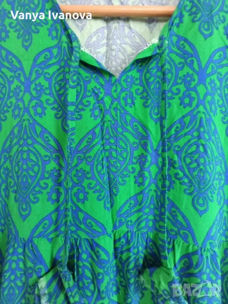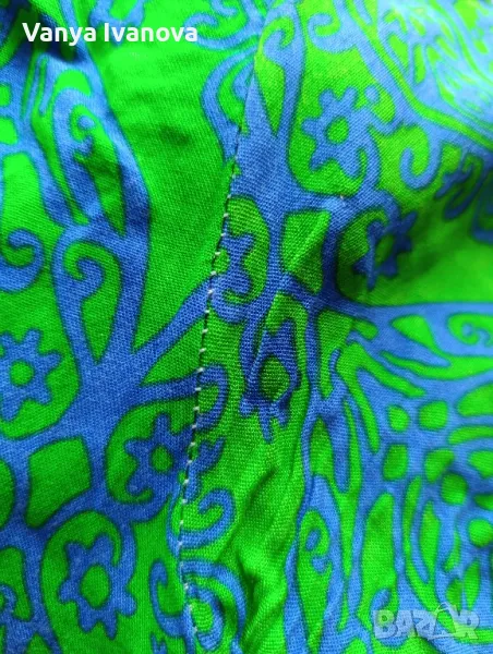 Зелена рокля в комбинация със синьо.