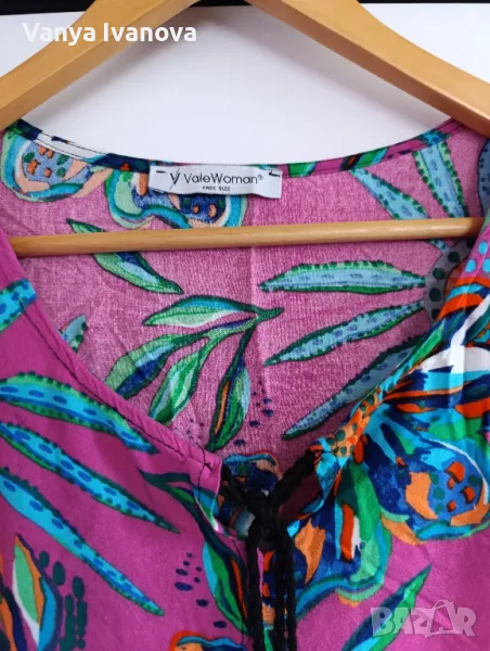 Цикламена с пискюли , 3/4 ръкав с къдрици и пискюли.Много наситени цветове .