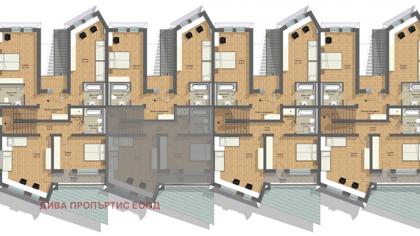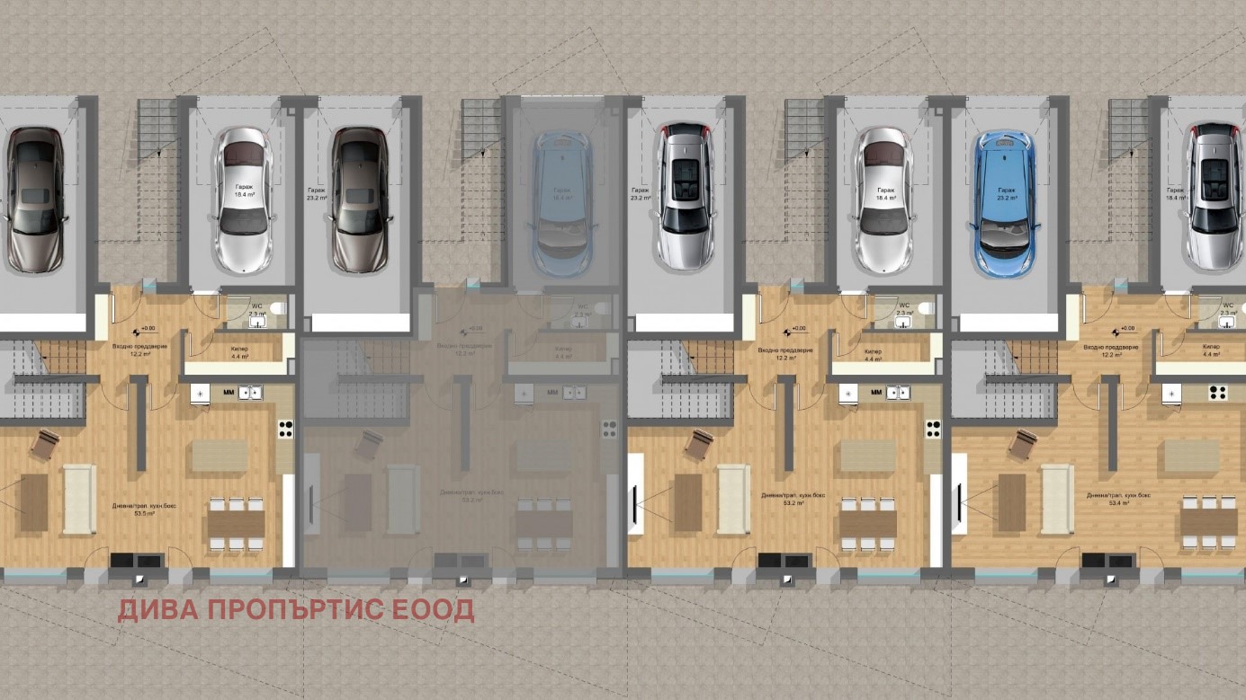 ДИВА Пропъртис има удоволствието да ви представи мезонет BRH-05 на 2 нива от 183 кв. м. с прилежащ двор от 305 кв. м. в затворен комплекс.