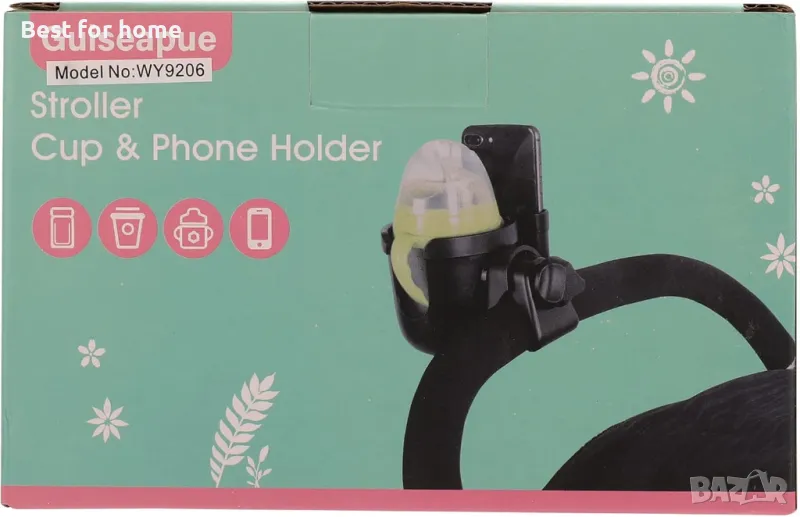 Широка гама от приложения: Тази поставка за чаша за бебешка количка две в едно е оборудвана с поставка за мобилен телефон, която може да държи бутилки с мляко и мобилни телефони едновременно. Поставката за чаша за количка е подходяща за всякакви бебешки шишета, бутилки за напитки и чаши за кафе. В същото време тази поставка за чаша за количка е съвместима с повечето колички: uppababy, doona, nuna и т.н.