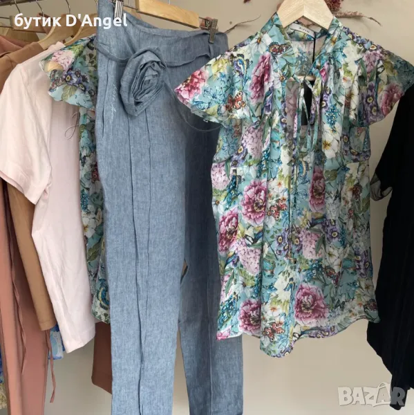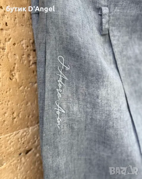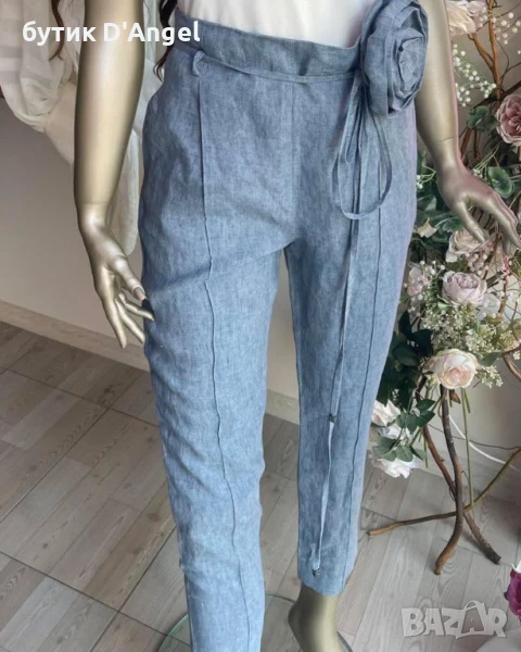 Панталон в нежен син цвят. Панталонът е тип чино и е подходящ за кецове, мокасини или телесен ток. Съчетайте с любим t-shirt или риза в нежни нюанси. Колан от материята с метални акценти с лого.