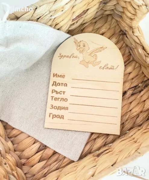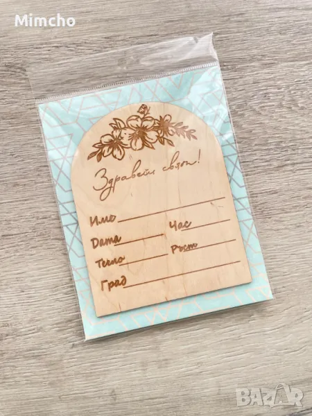 „Здравей, свят!“- дървена карта за попълване на данните на вашето бебе.
