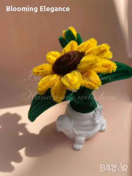 Представяме ви най-новия модел в нашата колекция - сладки слънчогледи, внимателно изработени в гипс с внимание към всеки детайл. Те са перфектни за всяко празненство, като част от ръчно изработени букети или като уникален декор за дома.
