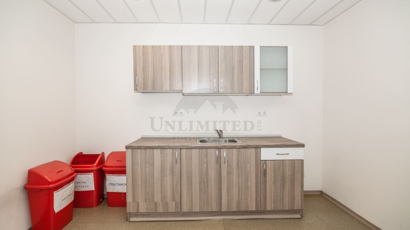 Разпределение: 8 отделни работни помещения, оборудван кухненски бокс, сървърно помещение, 4 тоалетни .Възможна е преконструкция на остъкляването и може да стане Open space.