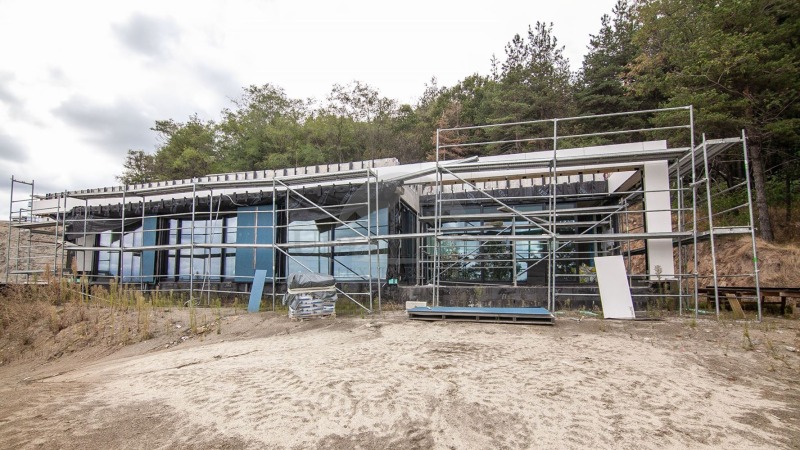 Къщата е построена в модерен минималистичен стил, с плоскък покрив и светла височина на помещенията 3.05 м., както и 10 години пълна гаранция на всички строително-монтажни работи.