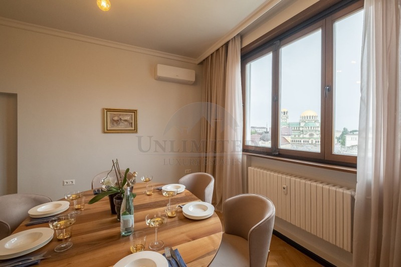 Уникален апартамент в аристократичната част на София , разкриващ невероятни гледки към паметникът на цар Освободител, сградата на Народното събрание и Храм-паметникът Св. Александър Невски, както и фасадата на Софийския университет.