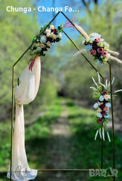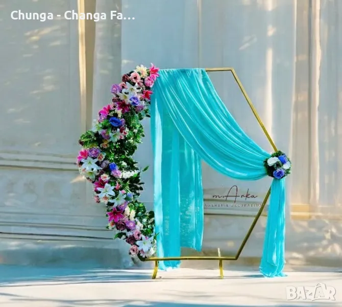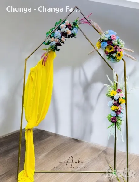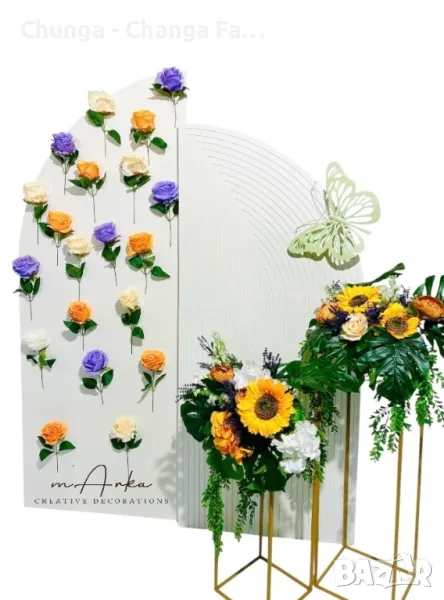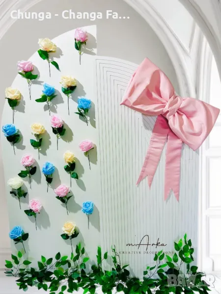 Предлагаме под наем богато разнообразие от декорации за всякакви празненства - флорални декорации, арки, стативи, цветарници, платове, пайетени стени.