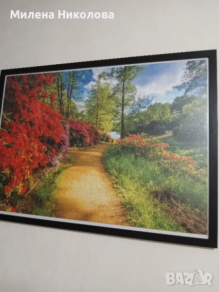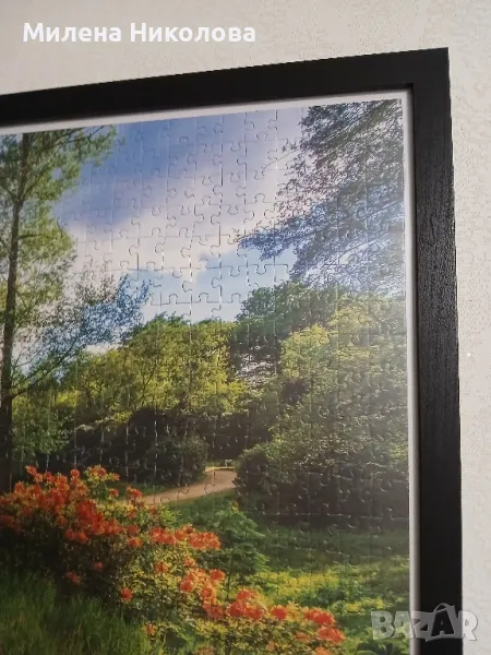 Картина-пъзел "В парка през лятото".Подходяща за декорация на лятна градина или заведение. Чудесни цветове и пейзаж. В рамка закупена от магазин JYSK. Пъзелът е модел на Авис БГ. Не е залепен. Може да се събере по желание и да се ползва рамката за друг. Само лично предаване.