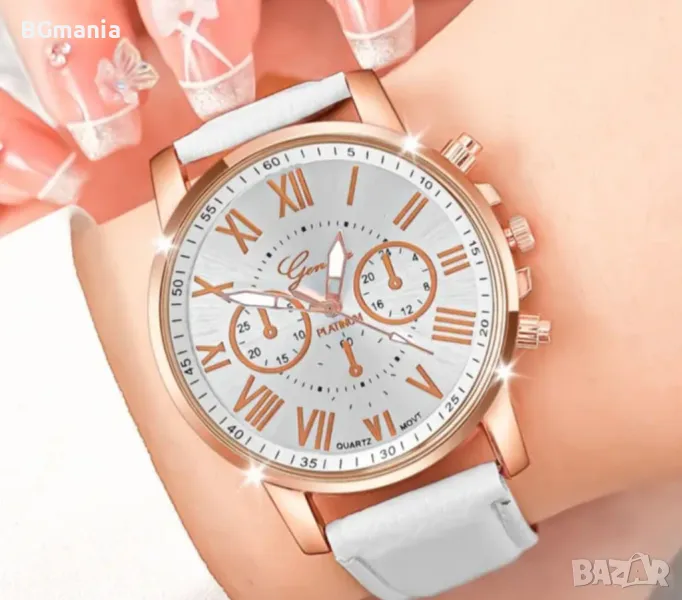 Уникален дамски комплект часовник с гривна в бяло и изящно бижу → Обява 50049650