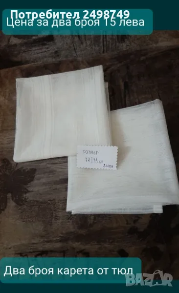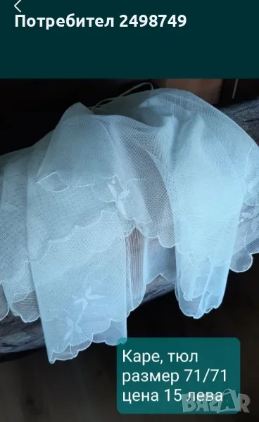 Ново!Плат за завеса , 100% памук, размер и цена видно е от снимките.ТРИ броя карета от тюл.Ковьор бродиран ръчно, ползван в добро състояние.