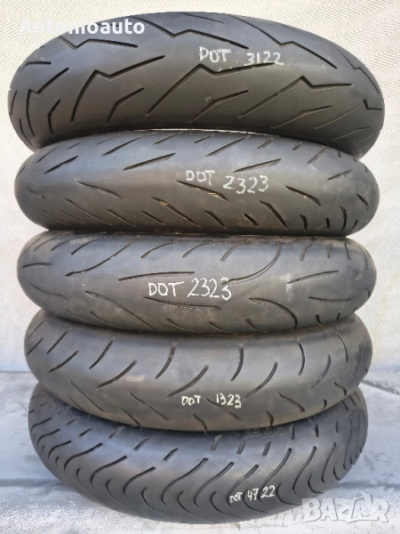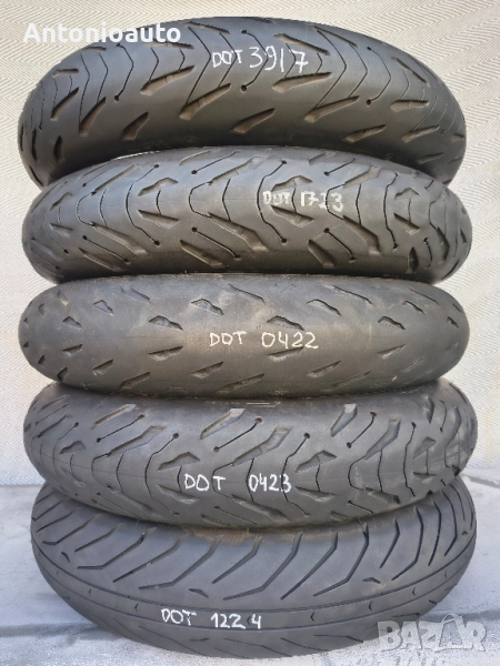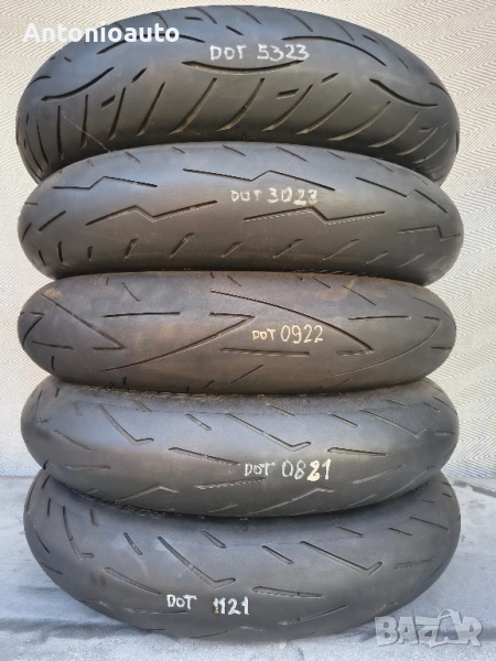 Всичките гуми са предни с размер 120 70 17. Всички гуми от снимките са налични, за цена и повече снимки на посочения телефон. Постоянен внос на мото гуми, налични от 10 до 21 цола