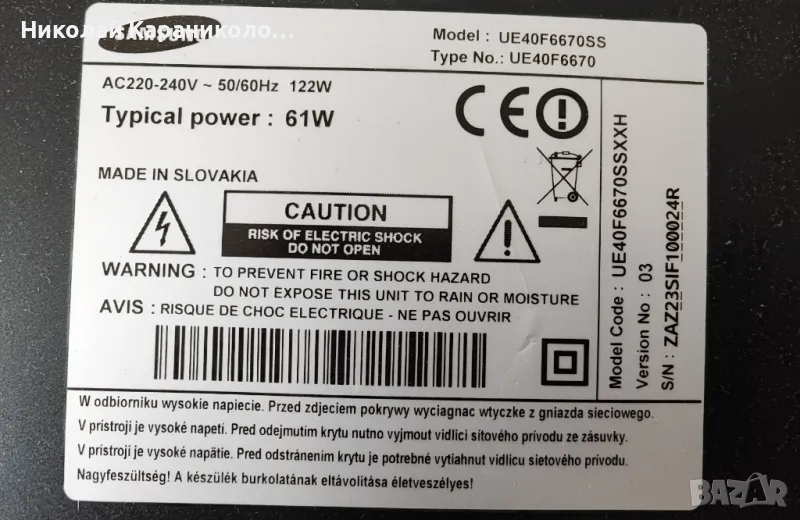Продавам тв.SAMSUNG UE40F6670SS за части по причина-дефектирал Mein board.Редовни съответно:
