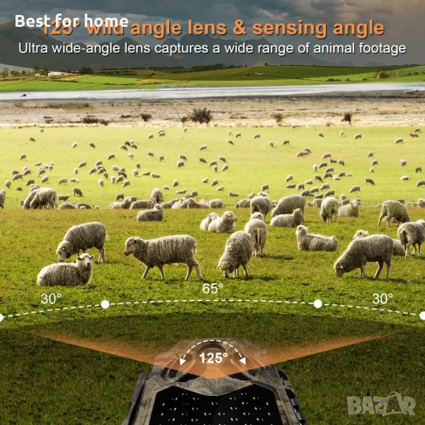 Забавяне на записа от 0,1 секунди и широк ъгъл на засичане от 125°: Ловната камера PH810W има моментна скорост на задействане от 0,1 секунди, така че няма да пропуснете важен момент. Проектирана с 3 уникални PIR детектора и ултраширокоъгълен сензор от 125°, който ви позволява да заснемате и да се наслаждавате на дивата природа в широко зрително поле.