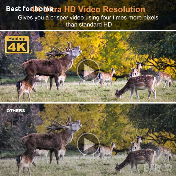 4K UHD видео и 48MP снимки: WiFi ловната камера използва най-новия сензор за изображения, за да поддържа запис на 4K UHD видеоклипове и супер ясни 48MP изображения. По-добра резолюция и наситеност на цветовете за подобрено потребителско изживяване. 2,4-инчовият LCD екран с висока резолюция и добрата функция за запис правят дивите животни по-ясни пред очите ви.