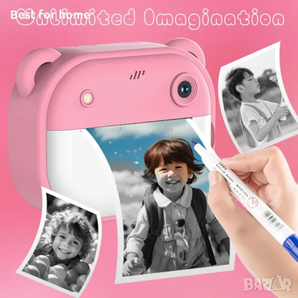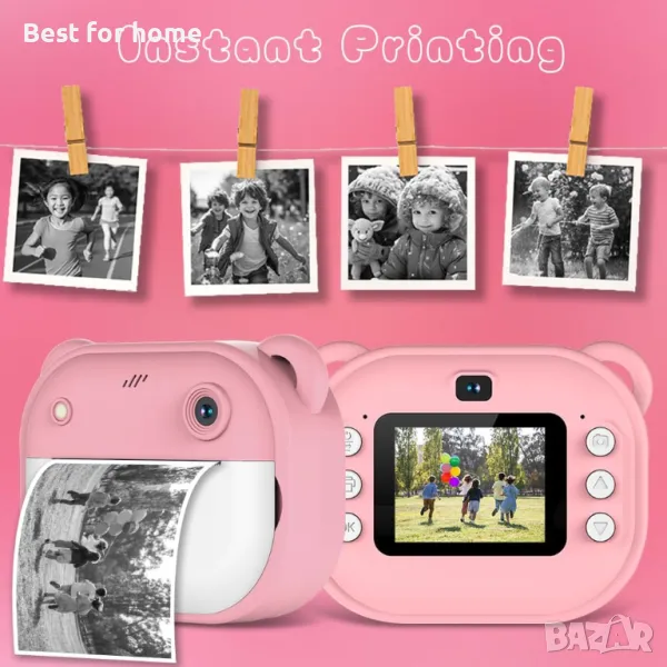 ДЕТСКИ ФОТОАПАРАТ ЗА МОМЕНТАЛНО ПЕЧАТАНЕ БЕЗ МАСТИЛО: Този детски фотоапарат използва усъвършенствана технология без мастило за печат без тонер. Децата просто трябва да натиснат бутона за печат, за да отпечатат снимките мигновено за секунди.