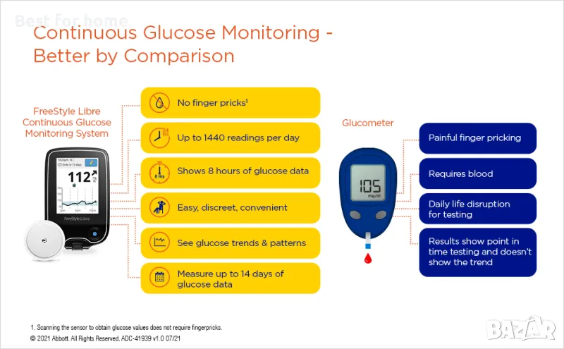 Използвайте системата FreeStyle Libre и измервайте глюкозата дискретно. Не позволявайте рутинните убождания на пръсти да прекъсват начина ви на живот.