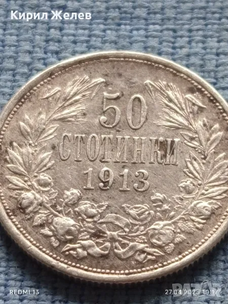 Сребърна монета 50 стотинки 1913г. Царство България Цар Фердинанд първи 43235 → Обява 50051755