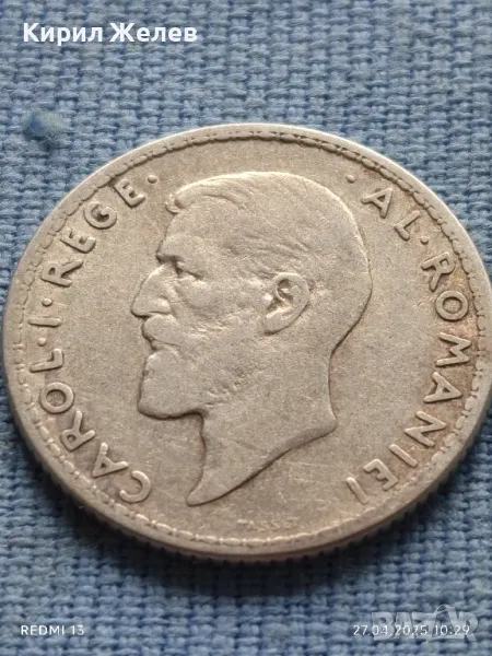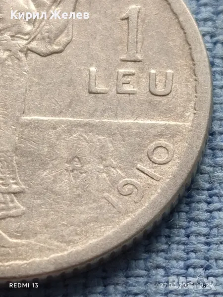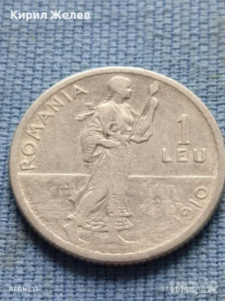 Сребърна монета 1 лея 1910г. Кралство Румъния Карол първи 40417
