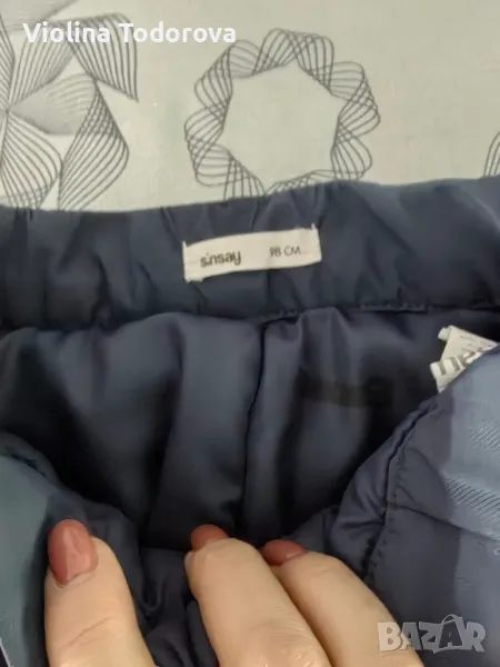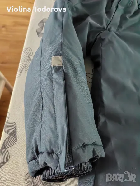 Петролен цвят шушлеков зимен панталон в размер 98 см. Има два джоба с шипове, ципове долу странично на крачолите. Дължина на панталона от колана до долу 59, 5 см, ширина 34, 5 см - едностранно. Перфектно състояние.Цена 12 лв.