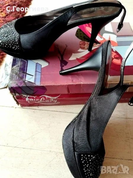 Обувките са изключително запазени! Всички камъчета са си на мястото. Носени са само на един единствен повод и ми бяха много удобни! Размера на тока е 10см.