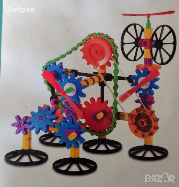 • С помощта на тези универсални елементи, децата могат да изграждат отделни конструкции, предаващи движения помежду си, което създава фантастични механични ефекти.
