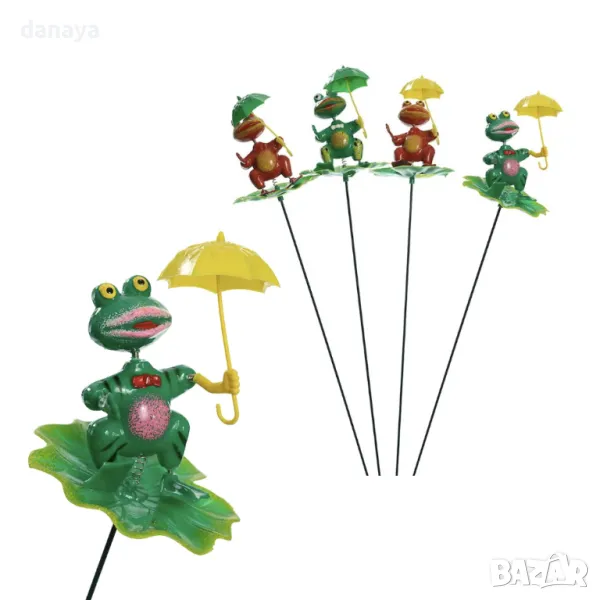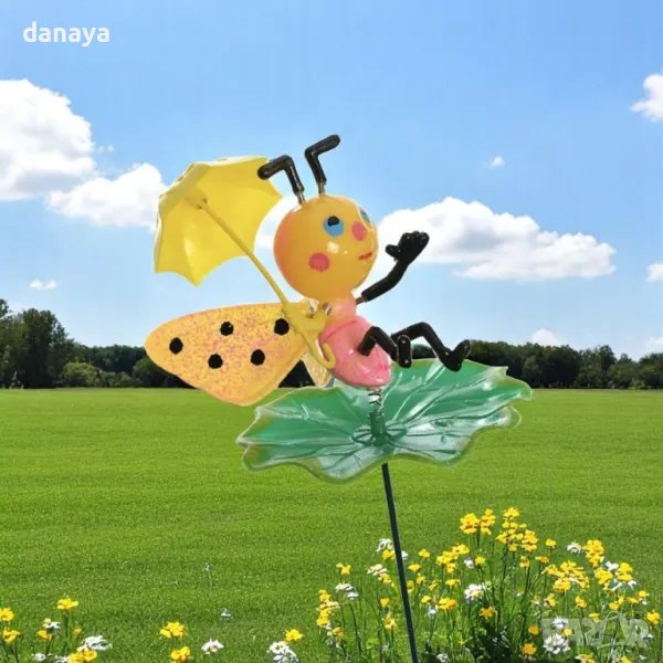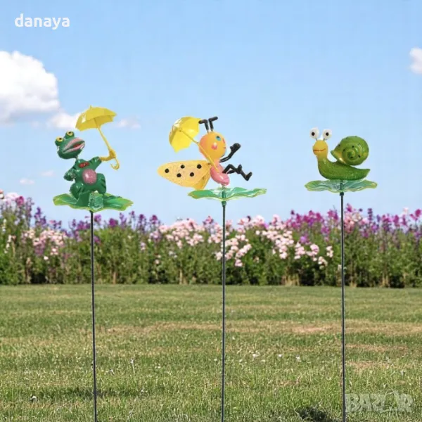Добавете цвят, настроение и защита на вашата градина, балкон или тераса с тази очарователна украса за градина! Нашите весели фигурки на животинки – охлювче, пеперудка с чадърче, водно конче, калинка, жаба с чадър, гъсеница, пчеличка върху слънчоглед и пчеличка върху листенца – ще внесат свежест и усмивки във всеки кът на открито.