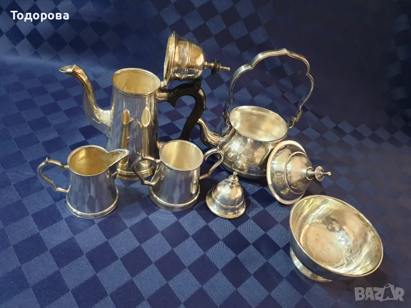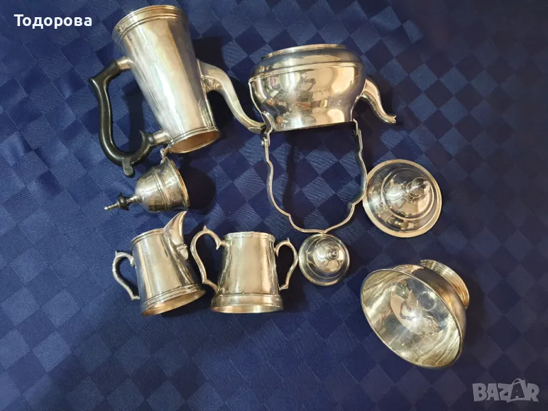 Масивен посребрен сервиз - 5 части - Кана,чайник,захарница,латиера и купичка.