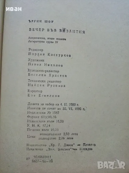 Вечер във Византия - Ъруин Шоу - 1980г. → Обява 50052869