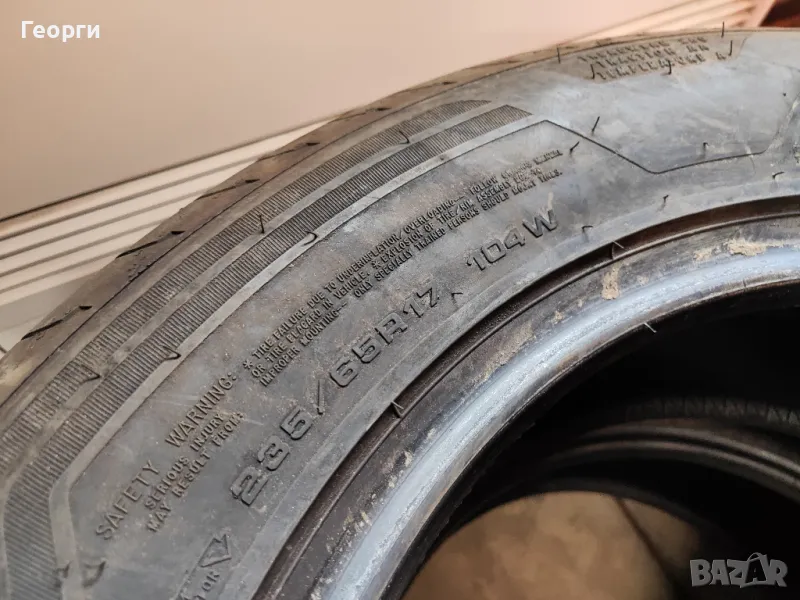4бр. Goodyear, 235/65/17, ДОТ 1021, 7.9mm грайфер!. Гумите са перфектни, без забележки, проверени са машинно за кривини, балони!! Разполагаме с всякакъв размер нова и втора употреба гуми от 14-22 цола за автомобил, джип и бус.
