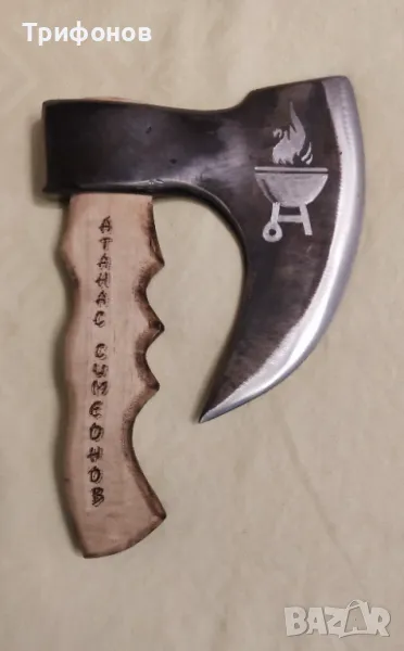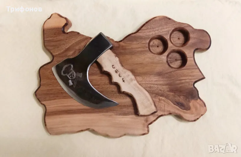 КОМПЛЕКТ - БРАДВА ЗА БАРБЕКЮ С ДЪСКА ЗА РЯЗАНЕ /персонализирана/ - ръчна изработка → Обява 50053588