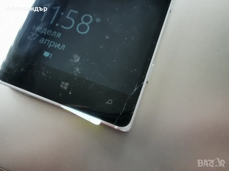 Телефонът е в много добро състояние. Единствената забележка е леко пукнато стъкло долу в дясно на екрана. Вижда се на една от снимките.