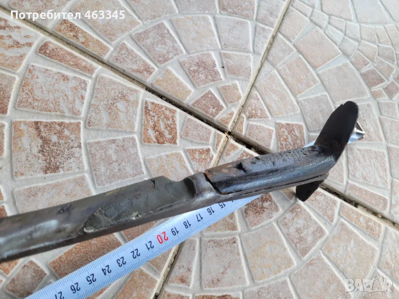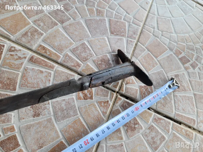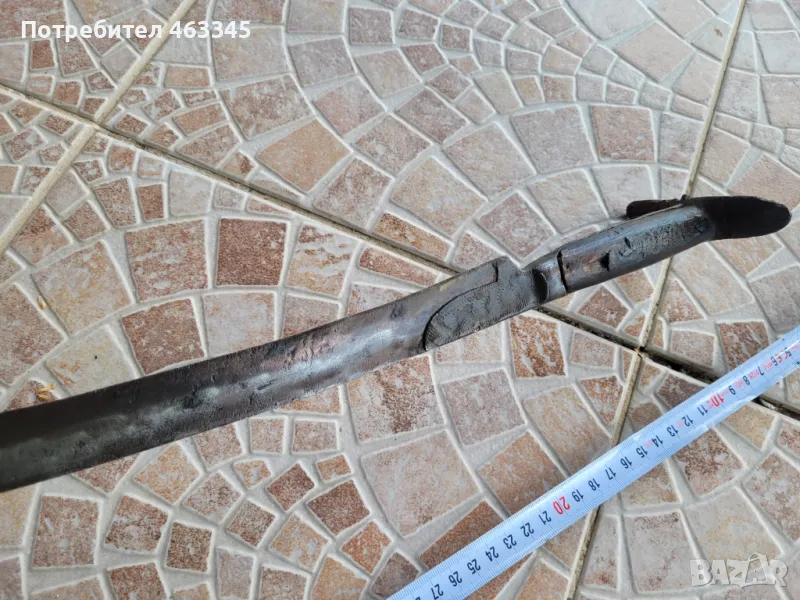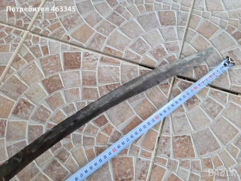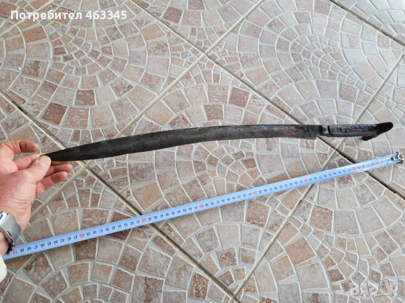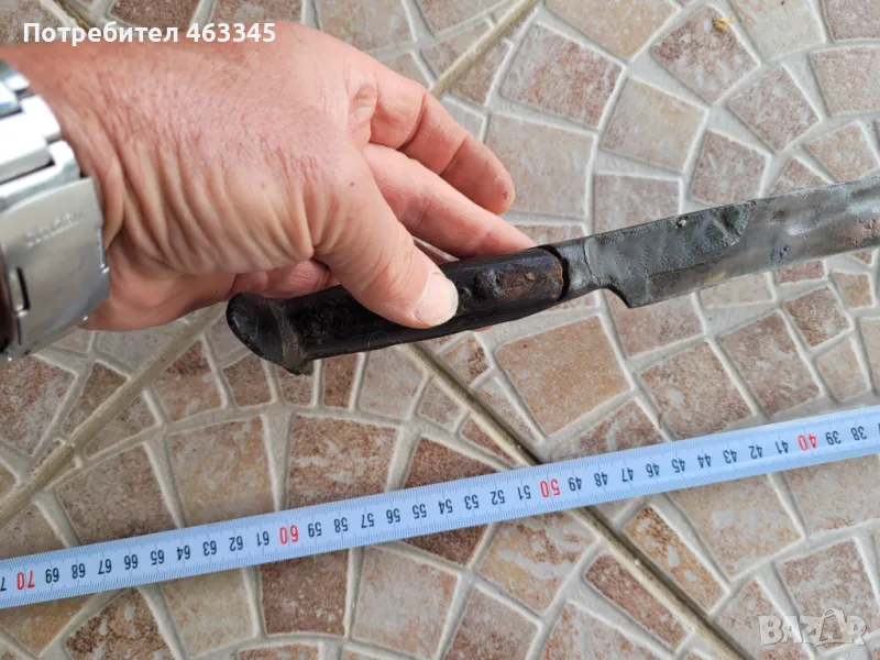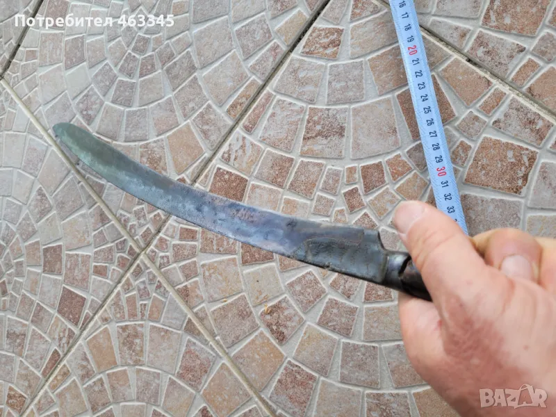 Ятагановиден нож тип "зейбек". Предвид размера си ножът е много много рядък. Острието е в прилично състояние, без дълбока ръжда и без язви. На места има само капчици повърхностна ръжда. Чирените са изработени от рог и са абсолючно здрави с нормални следи за предвид възрастта на оръжието. Кулаците са непокътнати, без следи от ремонт и без отчупено или повредено. Зейбекът има калаено-цинкови паразвани пред ядката, които са с много добра патина. Продава се без ножна