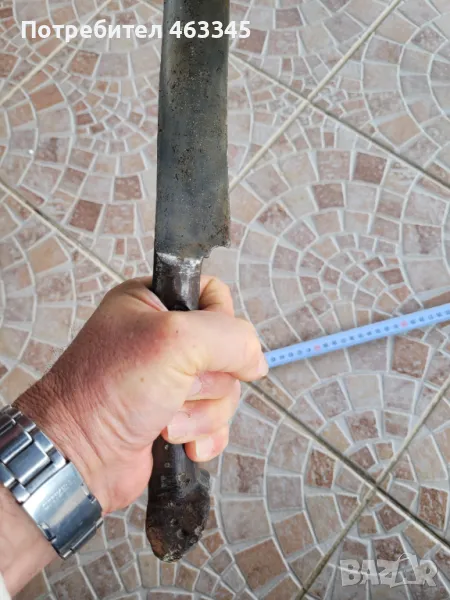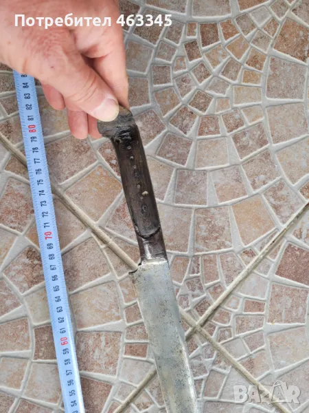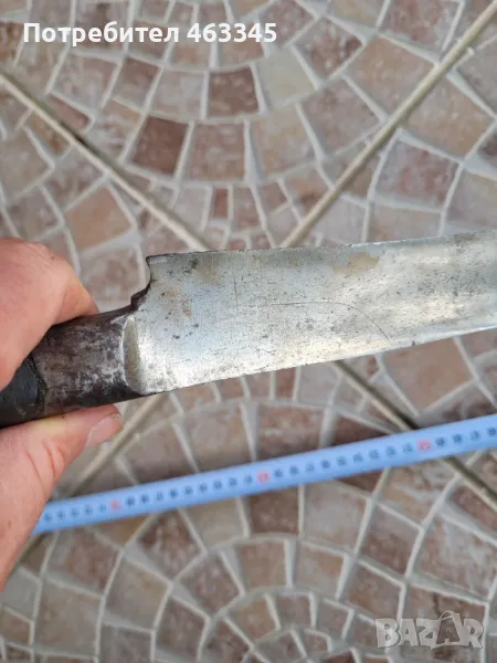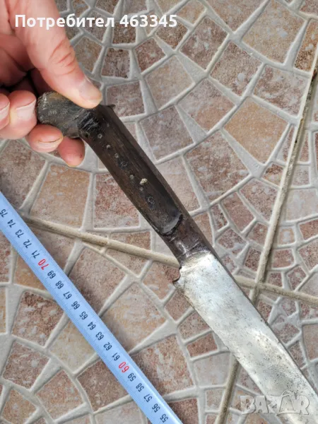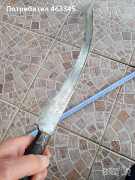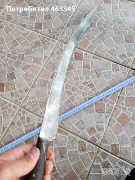 Старинен ятаган "зейбек" с много голям размер. Ятаганът е в перфектно състояние. Острието е без грам ръжда, без язви, непочиствано. Рогови чирени в перфектно състояние, без отчупено, изядено или издълбано. Кулаците са абсолютно здрави, без да са ремонтирани, което се случва често при този тип ятагани. Продава се без ножна