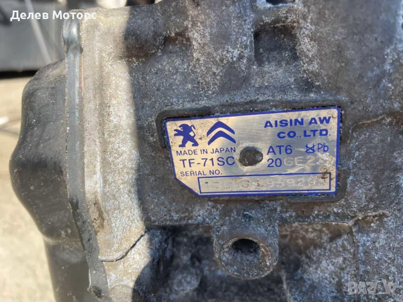 20GE23, TF-71SC Aisin автоматична скоростна кутия от Peugeot 308, 1.6 BlueHDI, automatic, двигател BHZ 10JBHY, 2018, 69 000 km, euro 6B, Пежо 308, 1.6 БЛУХДИ., 120 кс., engine BHZ 10JBHY, 2018 г., автоматик, евро 6Б в автоморга Delev Motors, между с. Каменар и с. Куманово гр. Варна.