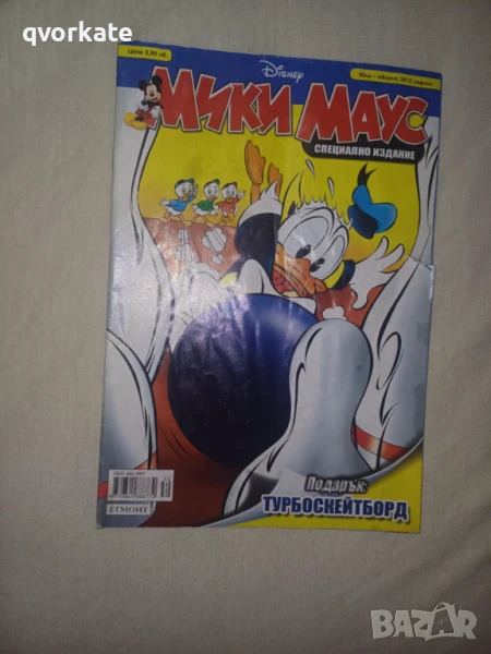 СНИМКА № 9 Списание Мики Маус-юли-август 2012г.,меки корици,изд.Егмонт България,състояние добро със забележка:2см.странично е като срязано през цялото списание,захабени корици.-12.00лв.ПРОДАДЕНО