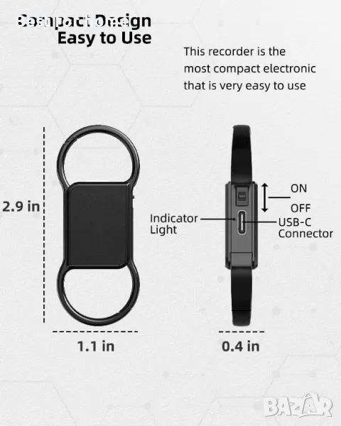 Hinne 64GB ключодържател диктофон, устройство за запис на аудио