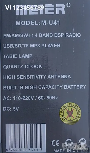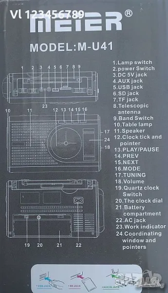 Радио с LED фенер и аналогов часовник, 4 обхвата AM/FM/SW +USB/SD MP3- Meier M-U61
