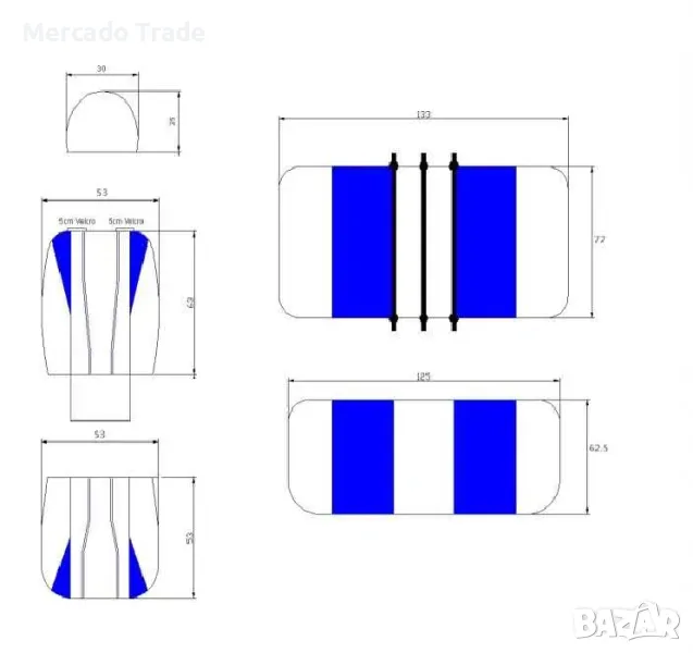 Тапицерията за задните седалки разполагат с 3 ципа, като съответно са подходящи за разделени седалки и покриват седалки от типа 50/50 или 60/40 или 40/60