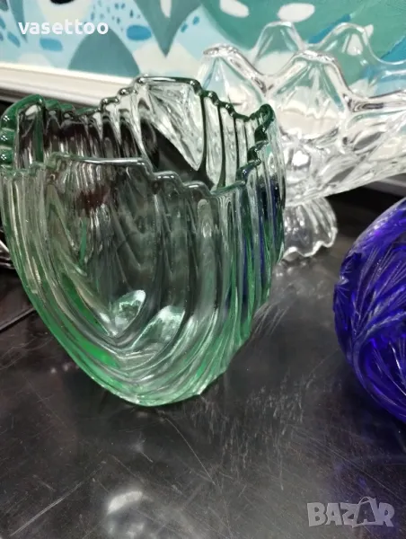 1. Зелена кристална гравирана ваза 18/13 см.-25 лв.