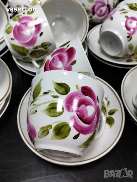 2. Неупотребяван чаен сервиз за 12 човека включващ: дванадесет чаени чаши 7/8.5 см. 250 мл., подложни чиниики 14 см., чайник,каничка и захарница.-220 лв.ПРОДАДЕН!