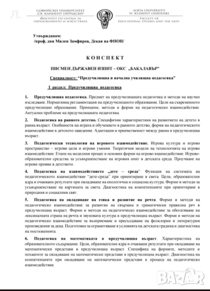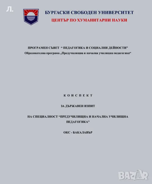 Предлагам разработване на конспекти за държавни изпити за студенти от бакалавърски и магистърски програми по специалност предучилищна и начална училищна педагогика.