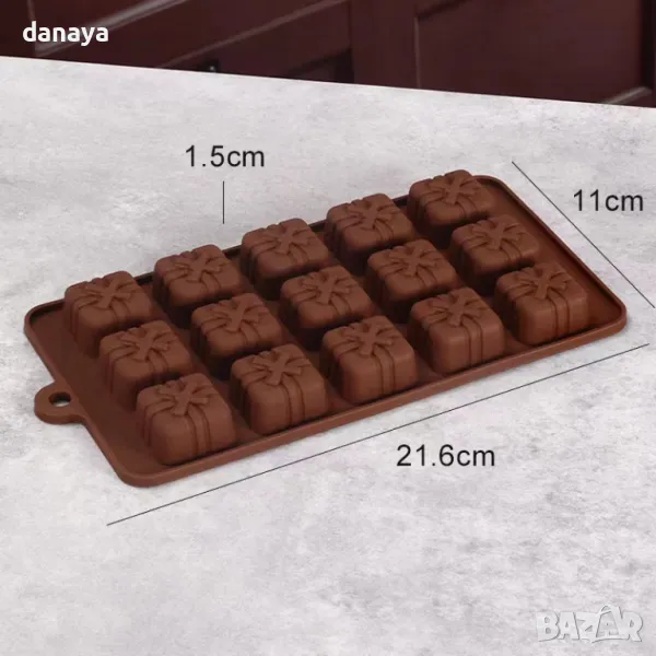 Силиконова форма за бонбони и лед Подарък – 15 гнезда.