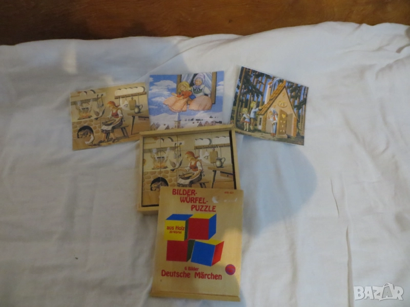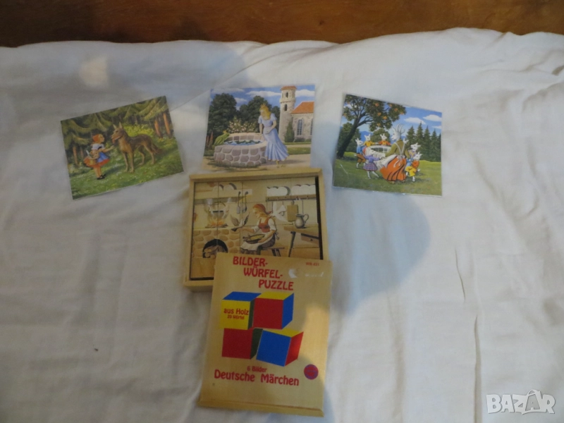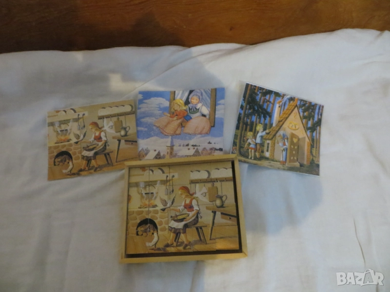 Винтидж пъзели от дървени кубчета Пипи, Червената шапчица и още.. → Обява 50058521