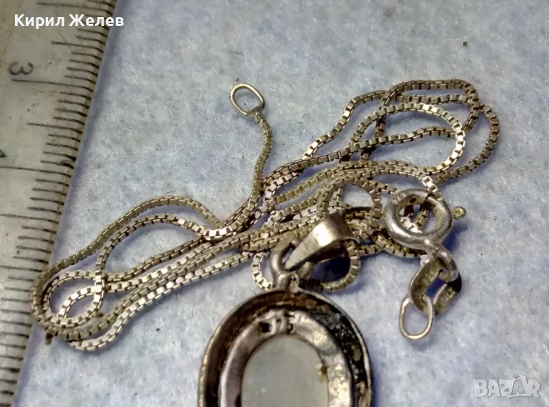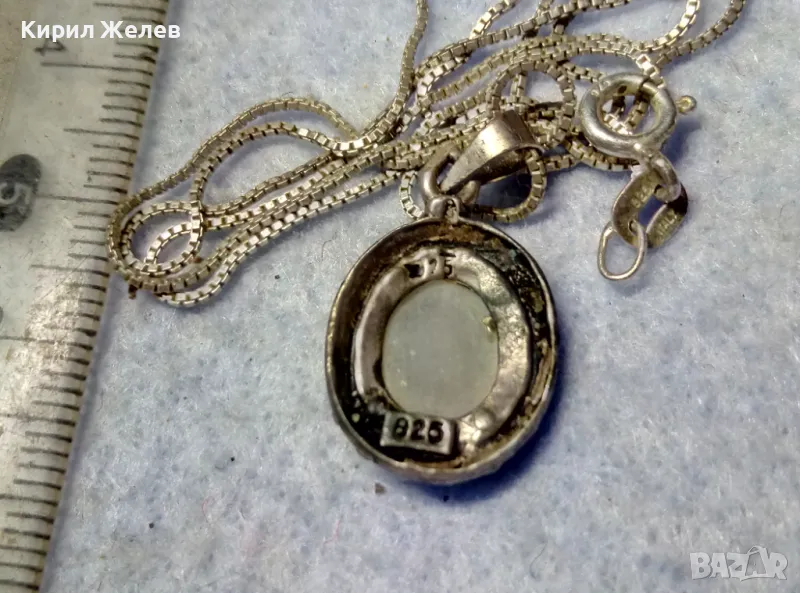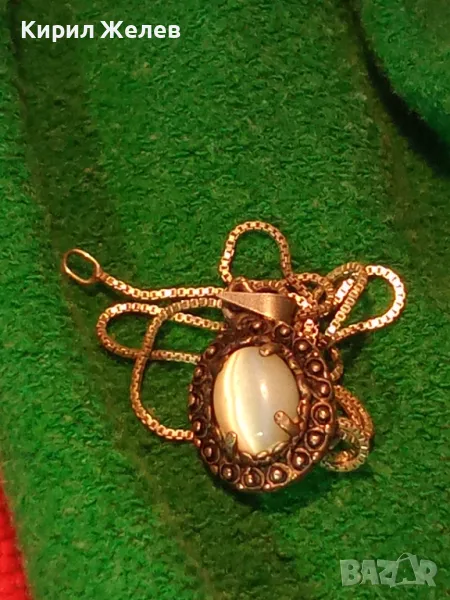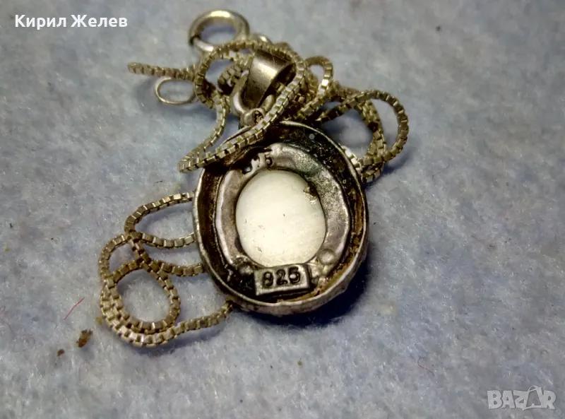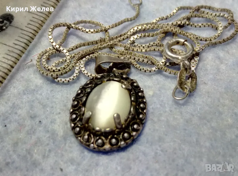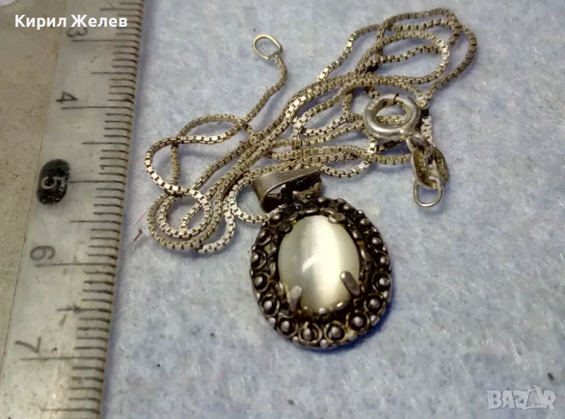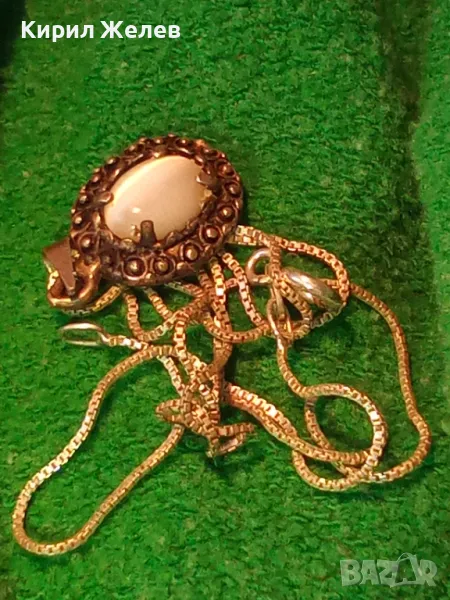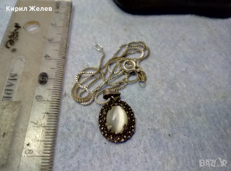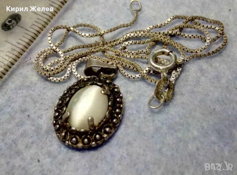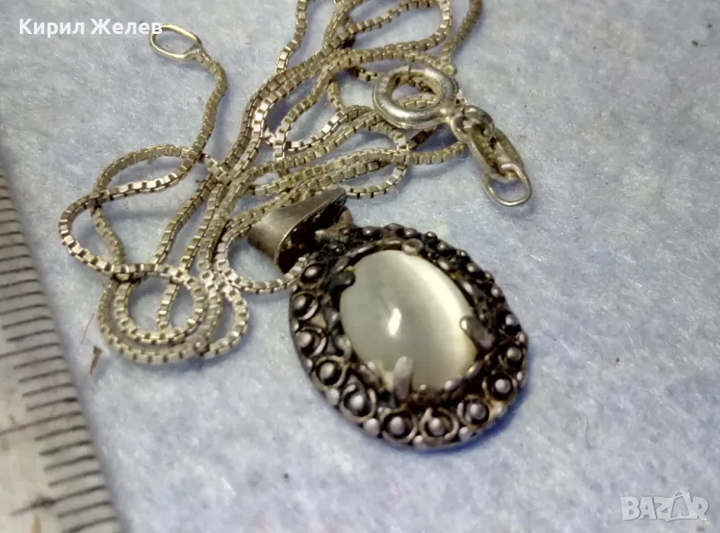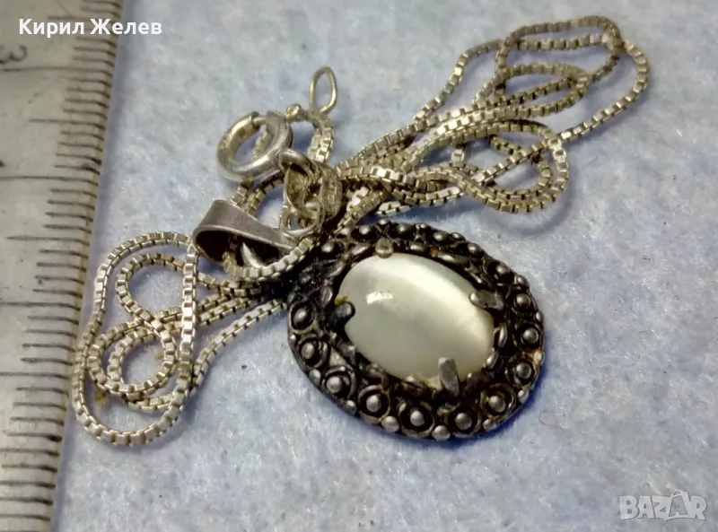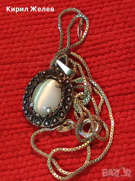 РЕТРО АРТ СРЕБЪРЕН ПЕНДАНТ с ПОЛИРАН ЛУНЕН КАМЪК и ФИНА СРЕБЪРНА ВЕРИЖКА СРЕБРО 925 ПРОБА 27067